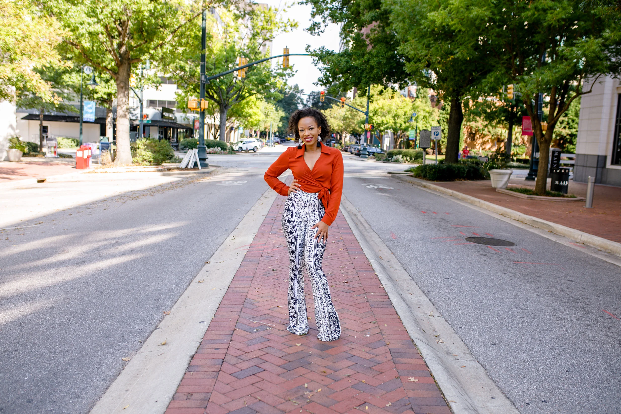 I am a big stickler on mixing something old with something new because the best outfits come from this combination. I have a pair of black and white floral print high-waist pants that I wore once two years ago and I randomly pulled these out of my closet to pair with my orange wrap shirt. Since my top was really bright, I wanted to tone it down at the bottom.
